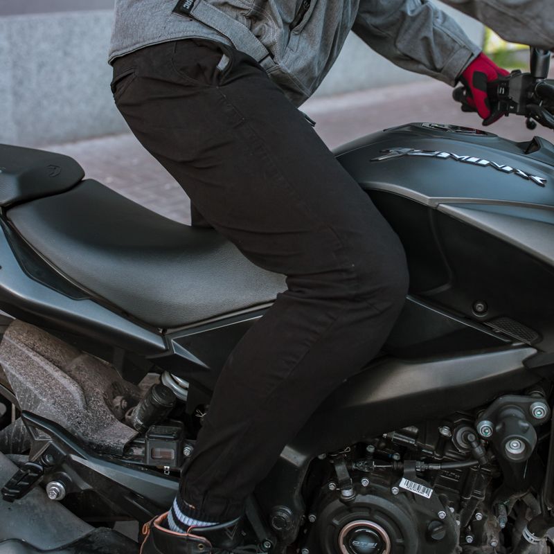 El nuevo Jogger Jet se convierte en la pieza icónica unisex de la marca, inspirado en la moda urbana contemporánea bajo el concepto de seguridad. Diseñados en Denim 8oz. Con elastano, dan como resultado un pantalón extra-ligero y resistente. La cintura es elástica y ajustable, mientras que la botamanga con doble elasticidad mantiene el pantalón firme incluso cuando se maneja a mayor velocidad. Además, incluyen protecciones en caderas y rodillas Norma CE En1621-1 Nivel 1, ideal para utilizar en la ciudad y subirse a cualquier tipo de moto equipado con toda la seguridad. Todas las protecciones son removibles para facilitar su limpieza.