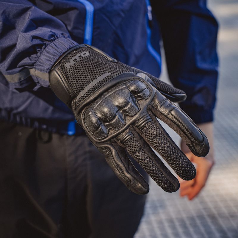 Guante ligero diseñado para las estaciones más cálidas del año Protecciones semi-rígidas en nudillos. Protección de espuma en palma y muñeca. Dedo índice compatible con pantallas táctiles para poder usar con smartphones y sistemas GPS.